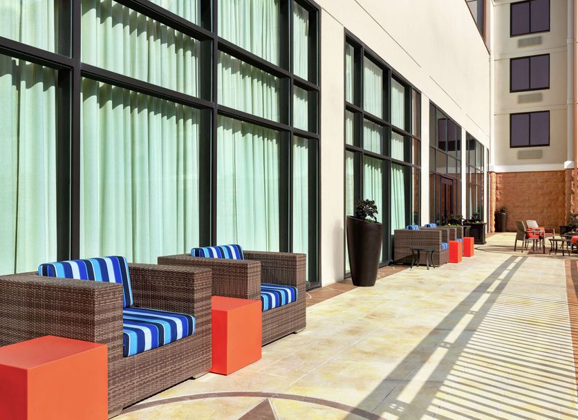 Hotel para familias en Mesquite con desayuno gratuito y fácil acceso al centro de convenciones En este hotel para no fumadores tendrás una piscina al aire libre, un gimnasio abierto las 24 horas y un centro de negocios disponible las 24 horas a tu disposición. Podrás disfrutar de un desayuno bufé gratuito y wifi gratis en las zonas comunes. Otras instalaciones incluyen un centro de conferencias, café o té en las zonas comunes y un centro de negocios. Hampton Inn & Suites Dallas-Mesquite ofrece 160 alojamientos con caja fuerte y cafetera y tetera. Las camas tienen colchones con una capa de acolchado adicional y están vestidas con ropa de cama de alta calidad. Se ofrece una televisión de pantalla plana de 32 pulgadas con canales por cable de suscripción y películas de pago. Los baños están equipados con ducha y bañera combinadas, artículos de higiene personal gratuitos y secador de pelo. Los huéspedes pueden navegar por la web gracias a nuestro acceso a Internet gratis (por cable y wifi). Los servicios para las personas de negocios incluyen escritorio y sillas de oficina, además de teléfono; se ofrecen llamadas locales gratuitas (pueden existir restricciones). Las habitaciones también incluyen periódicos gratuitos entre semana y tabla de planchar con plancha. Se ofrece servicio de limpieza todos los días y es posible solicitar juegos de cama hipoalergénicos. Los servicios de ocio y esparcimiento en este hotel incluyen una piscina al aire libre y gimnasio abierto las 24 horas. No se permite la entrada a la piscina de niños menores de 18 años sin la supervisión de un adulto.