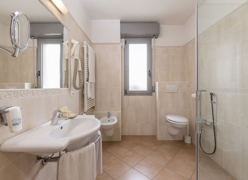 Playa y bienestar a pocos pasos de Playa de Rímini Relájate bajo el sol en la playa privada de arena de Hotel Sovrana & Re Aqva SPA, cuídate en el spa o diviértete jugando al vóleibol. Hotel Sovrana & Re Aqva SPA ofrece 51 alojamientos con minibar y caja fuerte. Las habitaciones disponen de balcón amueblado. Todos los alojamientos tienen decoraciones diferentes. Las camas están vestidas con edredón de plumas. Cabe destacar que este alojamiento permite a sus clientes elegir el tipo de almohada. Se ofrece una televisión LCD de 32 pulgadas con canales por satélite de suscripción. Los baños están equipados con bañera o ducha, albornoces, zapatillas y bidé. Este hotel en Rímini ofrece acceso a Internet wifi gratis. Entre las comodidades especialmente pensadas para las personas en viaje de negocios se incluyen escritorio, sillas de oficina y teléfono. Las habitaciones también incluyen periódicos gratuitos y secador de pelo. Se ofrece servicio de limpieza todos los días. Los servicios de ocio y esparcimiento en este hotel incluyen bicicletas gratuitas. Se pueden practicar las actividades de ocio y esparcimiento que se indican más abajo en las instalaciones o cerca del alojamiento (es posible que se aplique un recargo).