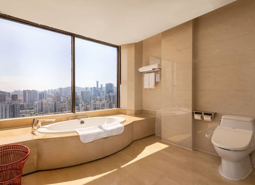 Hotel en el centro en Zhuhái con 2 restaurantes y fácil acceso a un centro comercial Este hotel dispone de 2 restaurantes, una discoteca y un gimnasio. La conexión wifi en las zonas comunes es gratuita. Otras instalaciones incluyen un bar o lounge, una cafetería y una piscina de temporada. Guangdong Hotel Zhuhai ofrece 422 alojamientos con aire acondicionado, botella de agua gratuita y albornoces. Las camas están vestidas con ropa de cama de alta calidad. Se ofrece una televisión de pantalla plana con canales por cable. Los baños están equipados con bañera o ducha, zapatillas, artículos de higiene personal gratuitos y secador de pelo. Este hotel en Zhuhái ofrece acceso a Internet wifi gratis con una velocidad de 100 Mbps o más (para 1 o 2 personas, o hasta 6 dispositivos). Los servicios para las personas de negocios incluyen escritorio y teléfono. Se ofrece servicio de limpieza todos los días. Las habitaciones de este alojamiento fueron completamente renovadas en mayo de 2024. Los servicios de ocio y esparcimiento en este hotel incluyen gimnasio y piscina al aire libre de temporada.